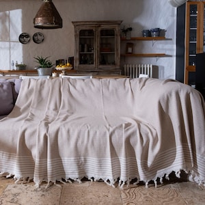 Natural Linen Cotton Throw Blanket Couch, Couch Cover, Sofa Quilt, Sofa Throw, Slipcover